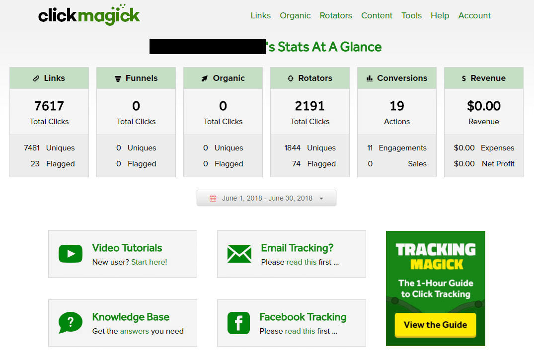 Clickmagick is one of the oldest link trackers out there. Focusing on small business, it offers a number of basic tools for affiliate marketers. It also offers a “hello bar” and popup script to run on your website, which is unique amongst the link trackers.